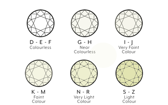 A primera vista los diamantes son incoloros, pero existen varias diferencias de tonos sutiles y mientras más se acerca el diamante a la ausencia de color, más valiosos se vuelve. ¿Por que varia el color? Bien, durante los cambios de temperaturas extremas y presión que crearon al diamante en un principio, residuos de elementos tales como nitrógeno y boro fueron incorporados a la estructura atómica del diamante. Estos residuos son los que le dan el color o la usencia de color al diamante. Los diamantes sin color son extremadamente raros. Pero también son raros los que tienen un color fuerte estos se conocen como "Colores Fancy" (o de Fantasía). Rojo, rosa, azul son los más preciados, pero es posible que exista cualquier color. La mayoria de los diamantes con calidad de gema, por si solos parecen ser incoloros, pero regularmente,tienen un poco de color, que normalmente es amarillo o café a causa de los restos de nitrógeno.
