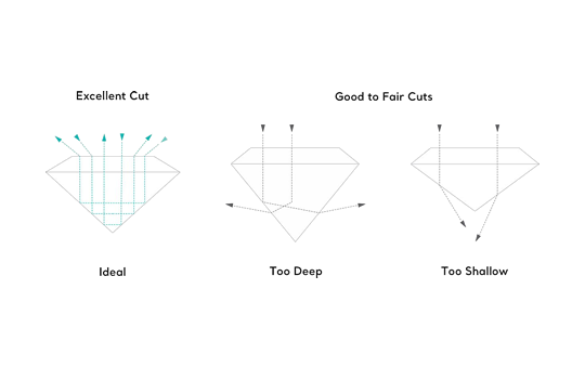 Si el corte es poco profundo, una parte de la luz escapará a través del pabellón o parte inferior,antes de que pueda ser reflejada
