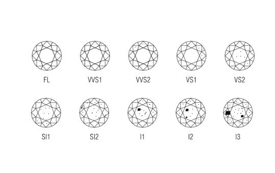 Gracias a la naturaleza, cada diamante es único. Cada uno poseé su individualidad. Esto puede ser a causa de pequeñas huellas de otros minerales atrapados durante el proceso de criztalización. Estas características naturales llamadas "inclusiones" se describen como las huellas de la naturaleza y ayudan a los gemólogos a determinar la edad de un diamante. La cantidad, color, origen, tamaño y posición de cualquier inclusión determina la puereza de un diamante. Mientras menos inclusiones tenga, se considerará más raro y se refleja mayor cantidad de luz, haciéndolo más valioso. Ya que es muy raro encontrar un diamante que no tenga inclusiones, mientras menos tenga, mayor será su valor.
